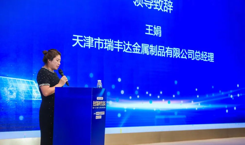 作為本屆論壇的主辦方之一,天津市瑞豐達(dá)金屬制品有限公司總經(jīng)理王總上臺(tái)致辭,歡迎光伏領(lǐng)域的專家學(xué)者、企業(yè)領(lǐng)袖、業(yè)界精英的到來(lái),感謝大家在百忙之中抽出時(shí)間來(lái)到會(huì)議現(xiàn)場(chǎng),大家歡聚一堂、共同探討、深入交流,共議“雙碳”目標(biāo)下光伏產(chǎn)業(yè)發(fā)展思路及未來(lái)展望。